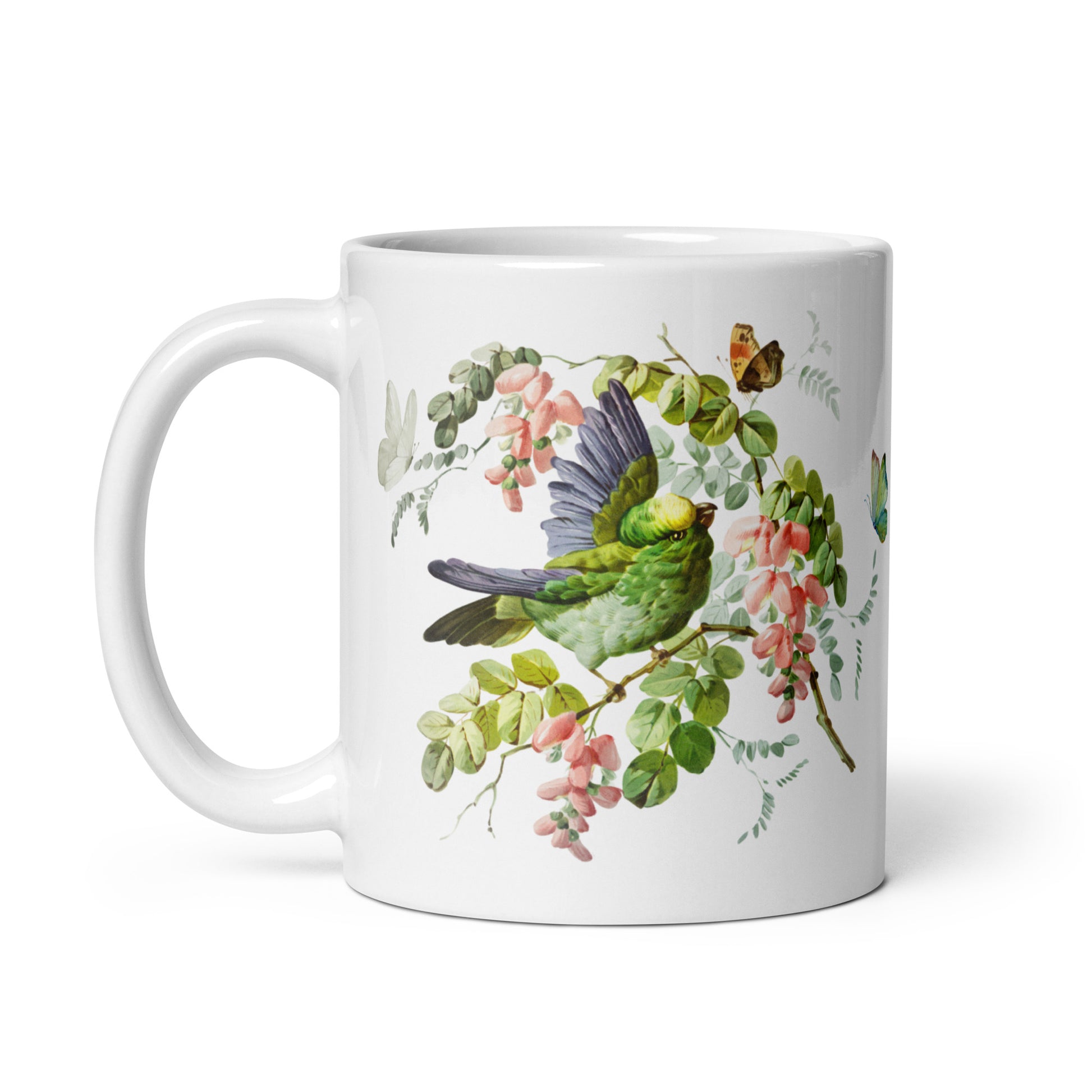Perfect for lovers of vintage nature prints, floral bird designs, or anyone looking to add a touch of history and elegance to their kitchen or workspace. Ideal as a gift for birdwatchers, gardeners, or collectors of decorative ceramic mugs.