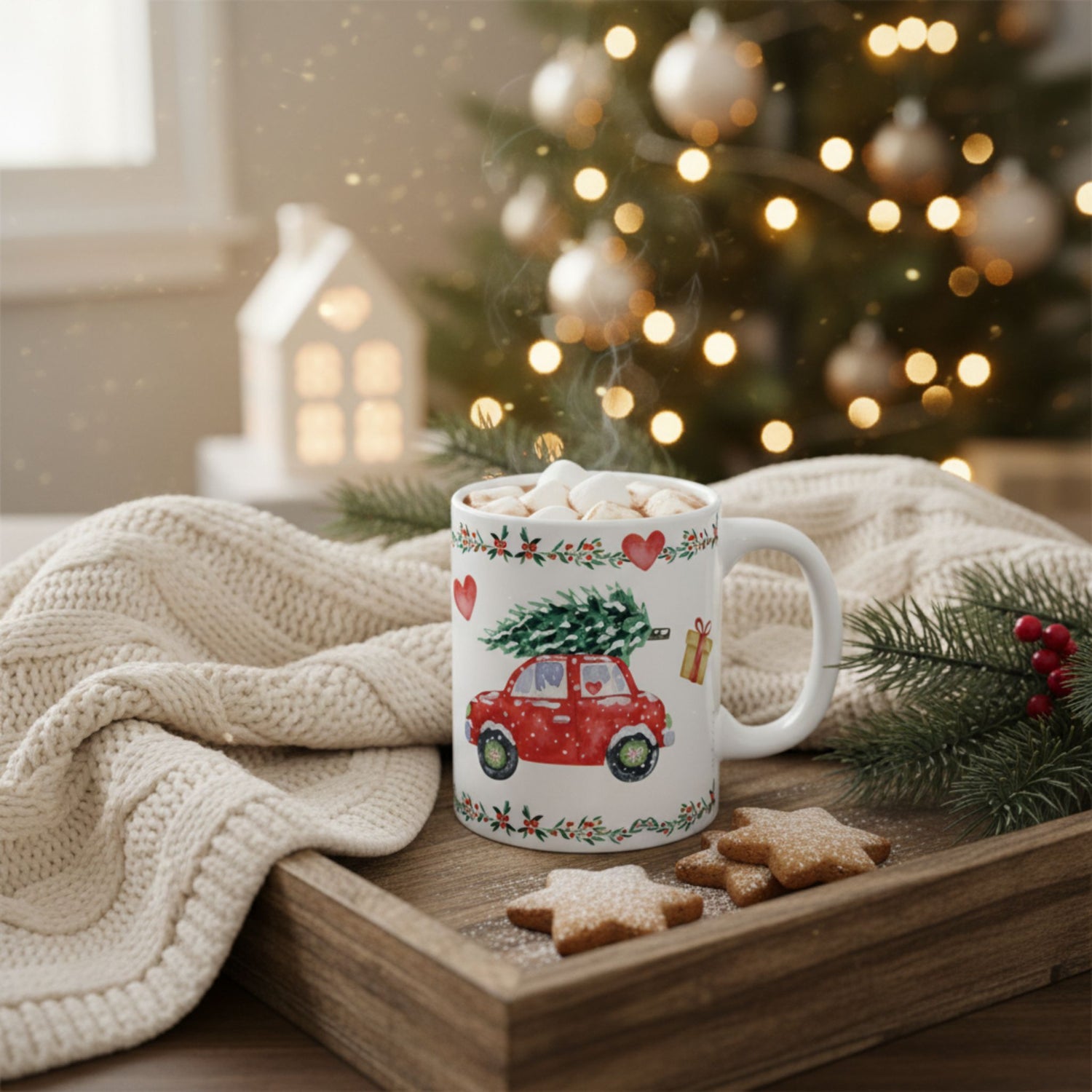 Crafted from premium ceramic, this microwave-safe and dishwasher-safe coffee mug is as practical as it is beautiful. Its large, ergonomic handle ensures a comfortable grip for your favorite hot beverages—coffee, tea, cocoa, or mulled wine. Celebrate the season with this durable holiday mug that blends style and functionality.